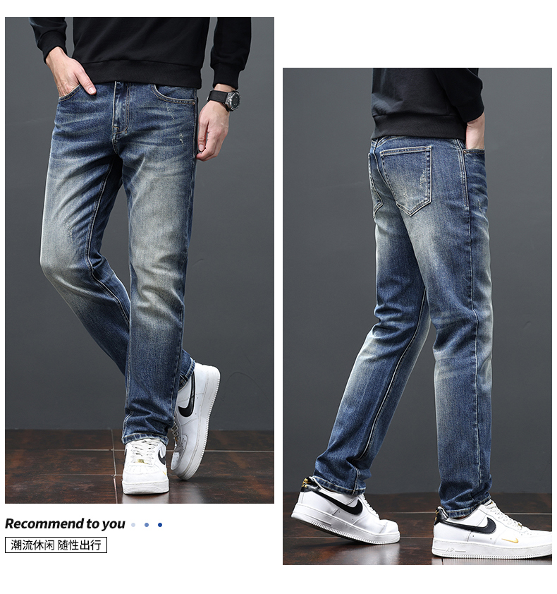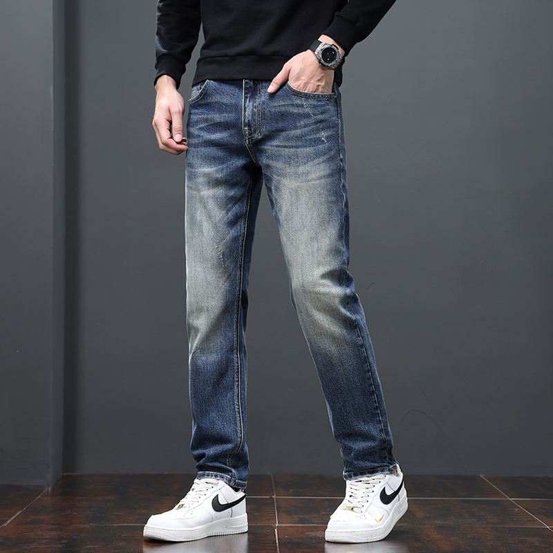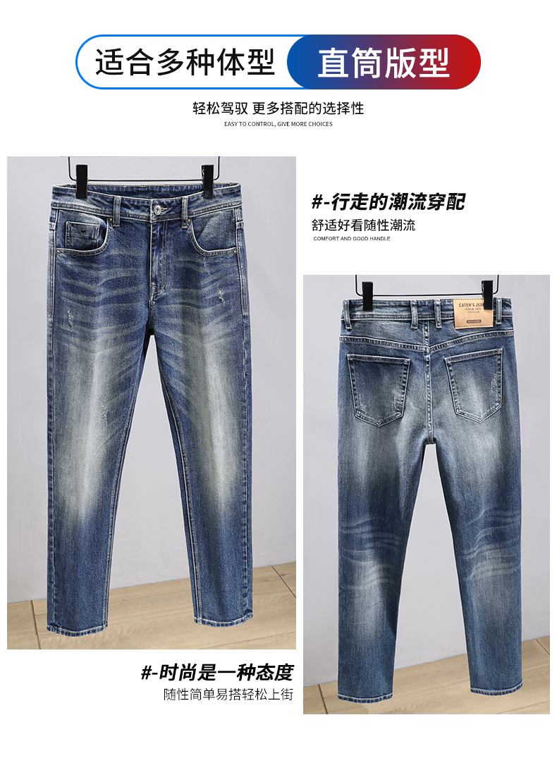 欧美简约通勤风莱赛尔纤维面料重工洗水精工时尚直筒牛仔休闲裤男